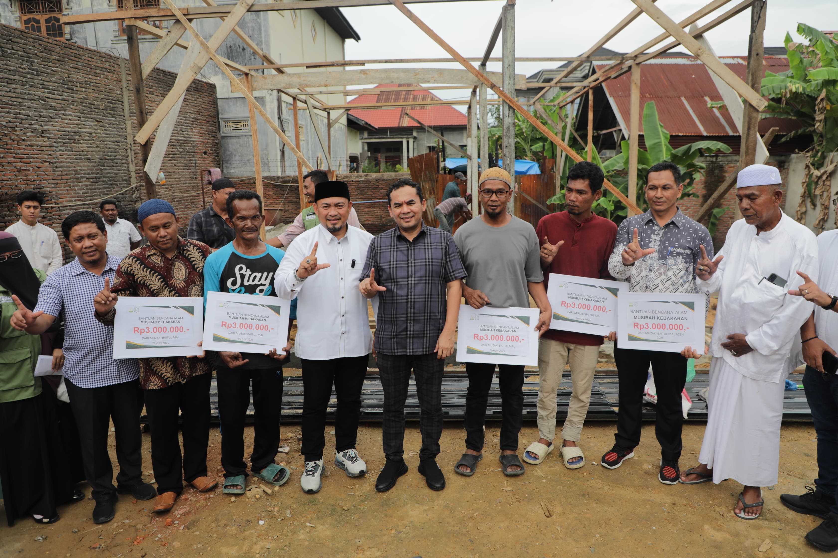 Wali Kota Lhokseumawe Didampingi Ketua Baitul Mal Serahkan Bantuan untuk Korban Kebakaran di Banda Sakti